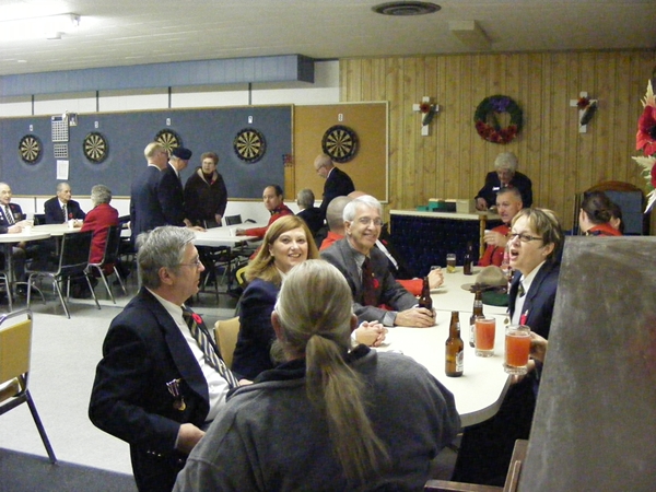 Betty already at her post waiting for everyone to head on in to the banquet supper.